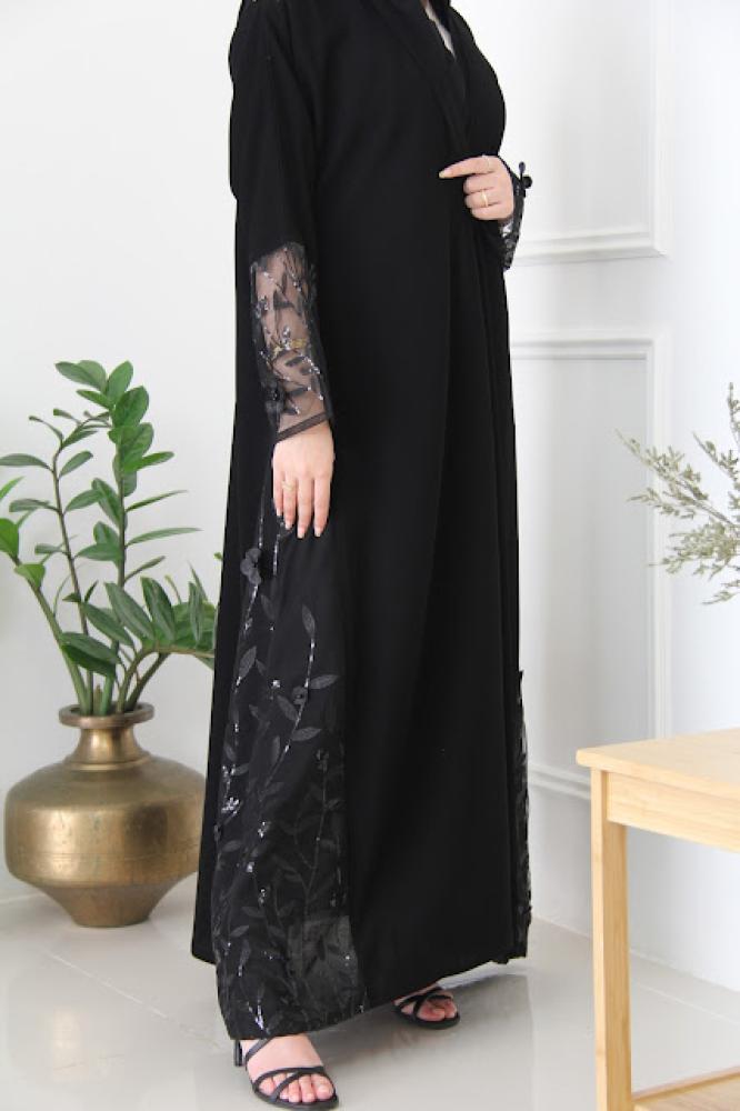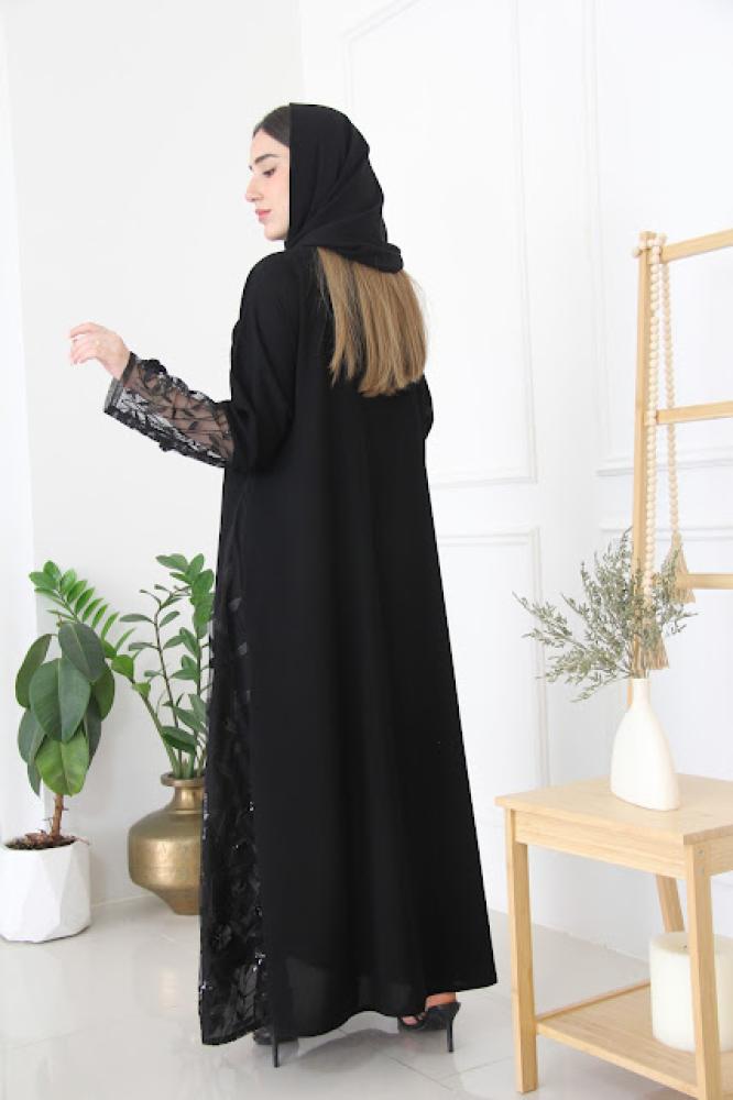 استعدي للموسم الدافئ مع "عباية قماش كريب ملكي تدخيل دانتيل ترتر ". تجمع هذه العباية بين النعومة الفائقة والأناقة لتمنحك إطلالة فاخرة في فصل الصيف