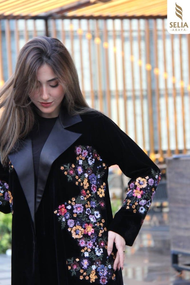 أضيفي لمسة من السحر والأناقة إلى إطلالتك مع عباية مخمل تطريز ترتر. تجمع هذه العباية بين فخامة المخمل وسحر التطريز بالترتر، لتقديم قطعة فريدة تبرز جمال المرأة بأناقة لا مثيل لها.