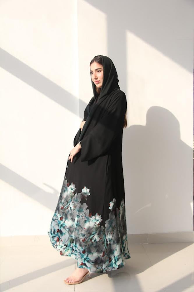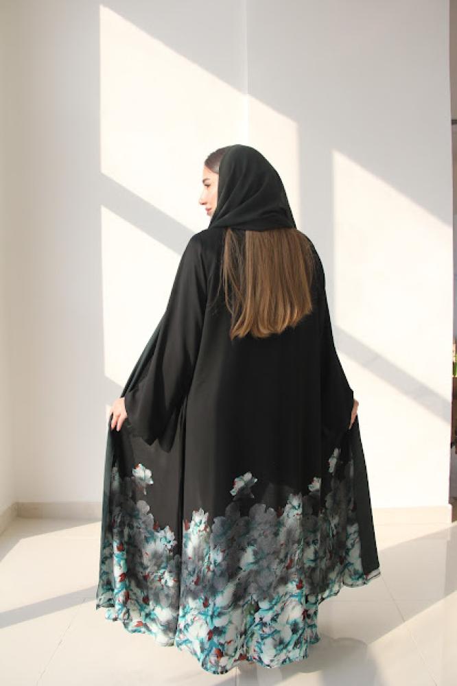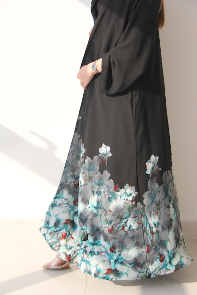 عبايه شيفون مبطن طباعة الوان لون اسود