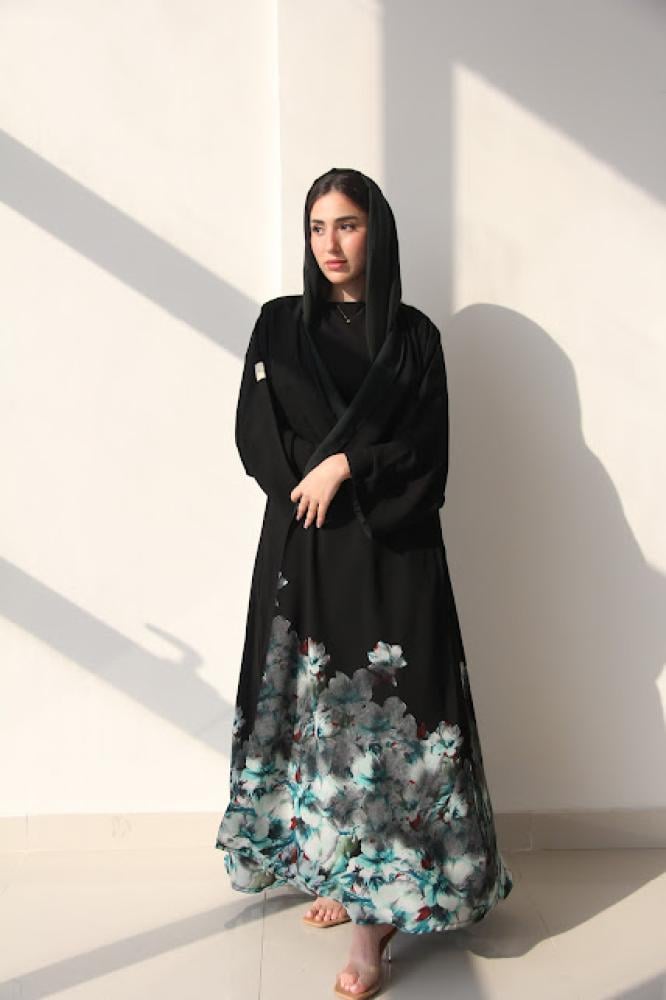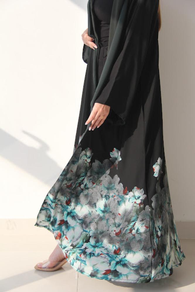 اختاري "عباية قماش شيفون مبطن طباعة الوان باللون الاسود" لتجمعي بين البرودة في القماش والأناقة العصرية في فصل الصيف