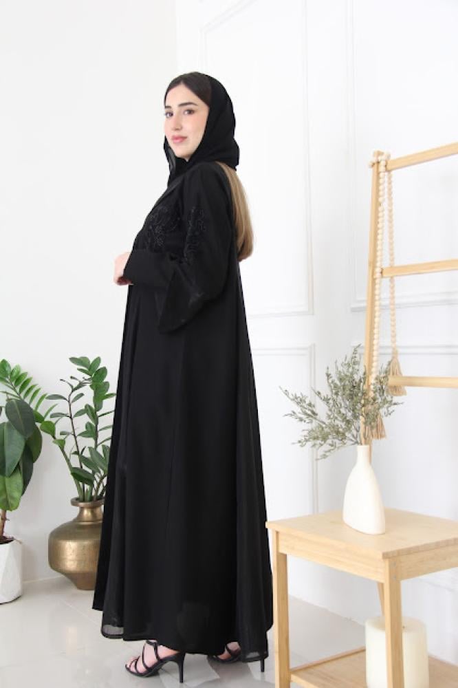 - تفاصيل عناية بالتصميم: تأتي العباية بتفاصيل دقيقة ومتقنة تظهر اهتمامًا بالتفاصيل ورقي في التصميم.