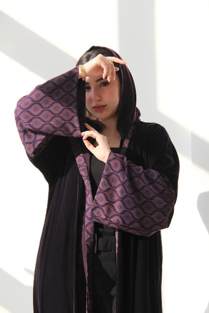 تأتي العباية بتصميم عصري يجمع بين نعومة المخمل وفخامة قماش الكشمير، ما يجعلها خيارًا مثاليًا للمناسبات الرسمية والاجتماعات اليومية.
